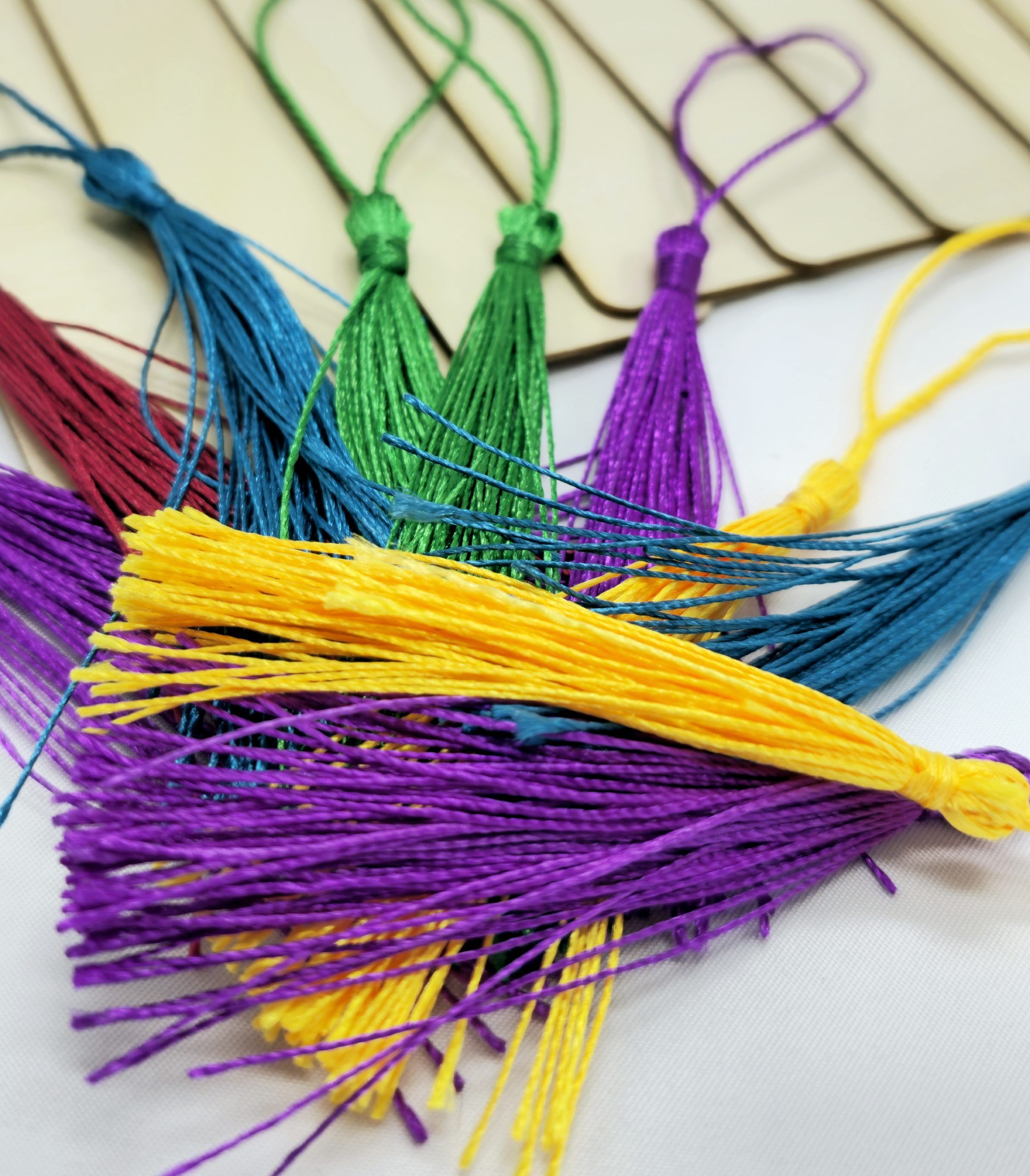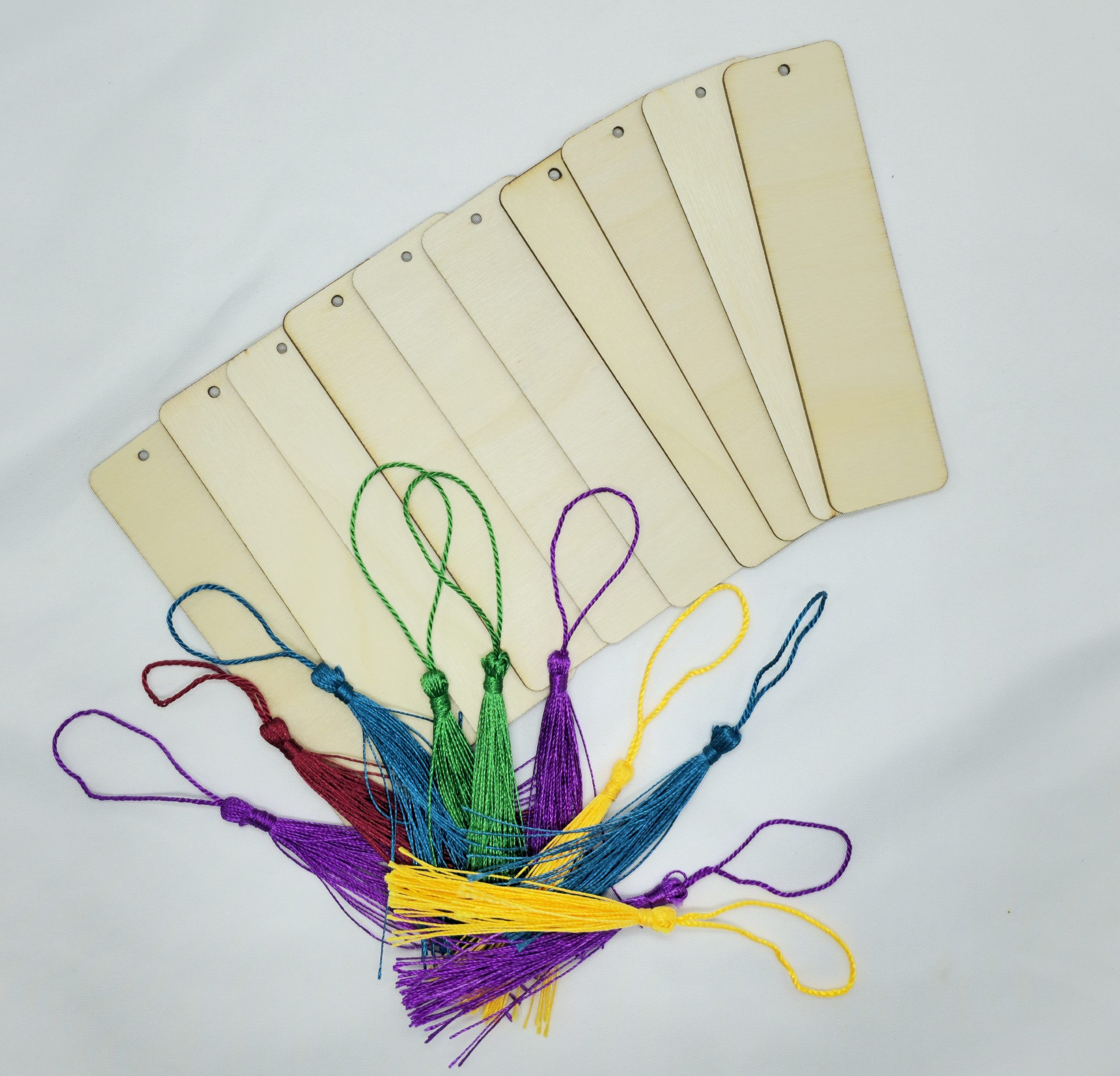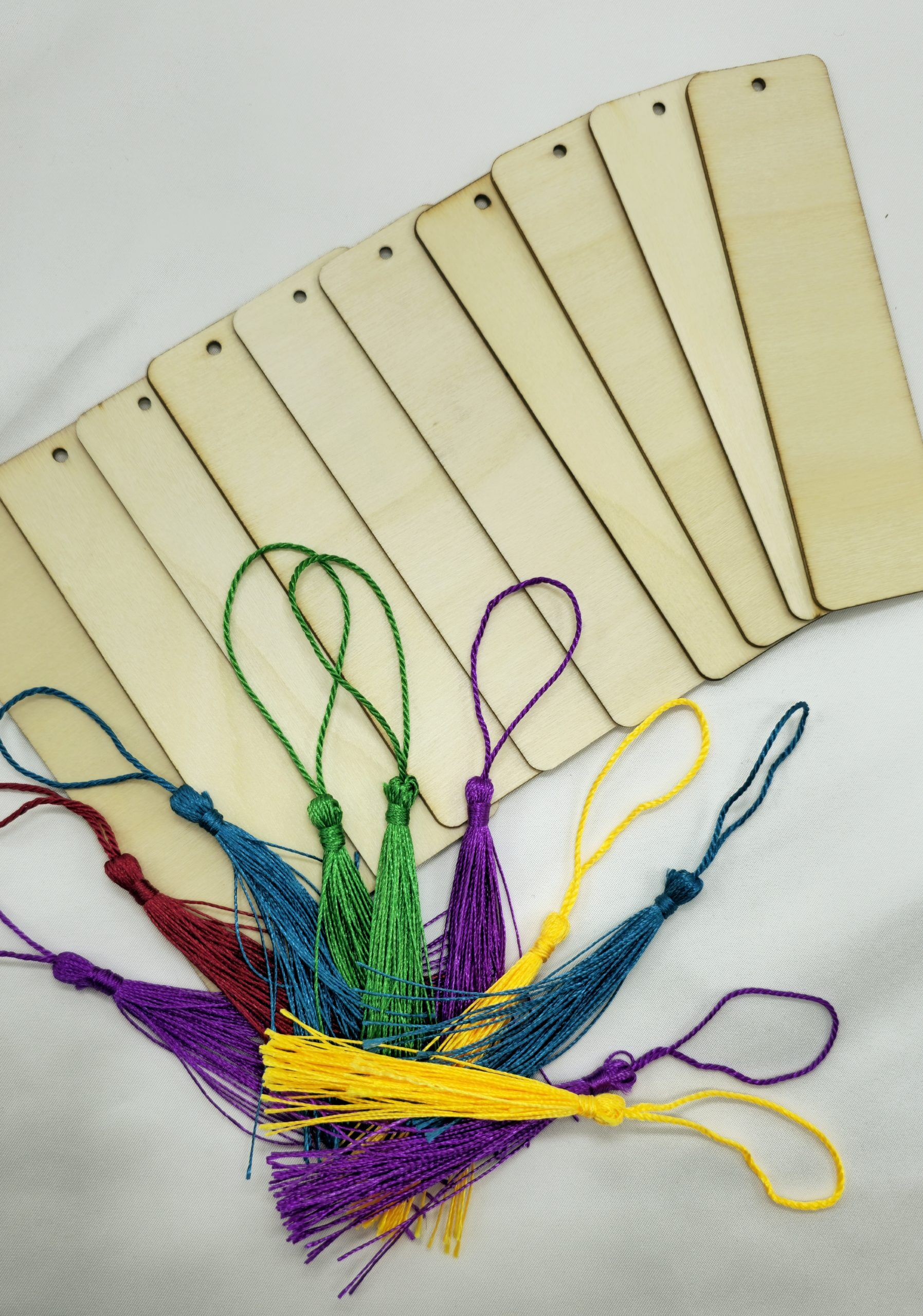 Rinkinyje rasite 5 medinius knygų skirtukus ir 5 kutukus (spalvos parenkamos atsitiktinai). Skirtukus galite dekoruoti įvairiomis priemonėmis.
